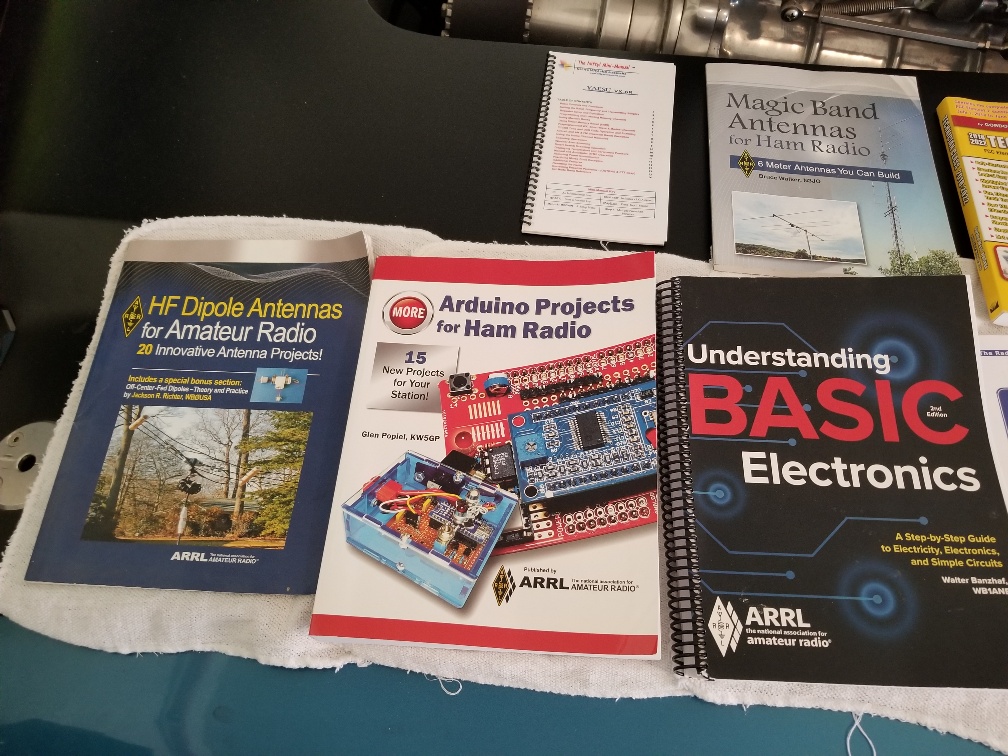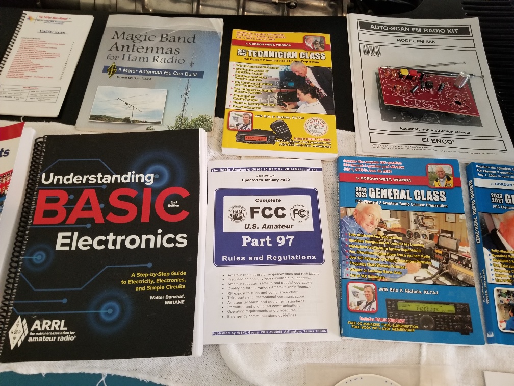 Several books and Ham testing software. HamStudy Technician Class software, General Class license prep books, and other eletronic understanding books. $25